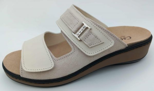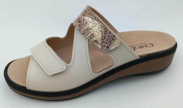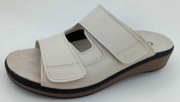 bézs, színkód: 562 560 / méretek: 35-42/ könnyű kényelmes papucs, valódi bőr felsőrész, tépőzárral állítható pánt. A talpbetét puha rugalmas anyagból készült,valódi bőrrel bevont, kivehető, igény esetén egyedi talpbetétre cserélhető. Ideális sarokmagasság, csúszásgátlóval ellátott talp.