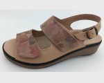 drapp, színkód:102 /méretek:35-42/ könnyű kényelmes szandál, valódi bőr felsőrész, tépőzárral állítható pánt. A talpbetét puha rugalmas anyagból készült,valódi bőrrel bevont, kivehető, igény esetén egyedi talpbetétre cserélhető. Ideális sarokmagasság, rugalmas talp.