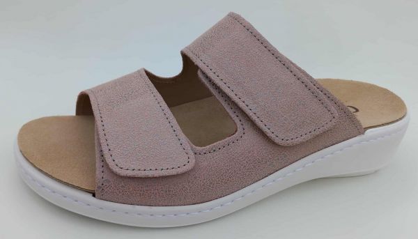 drapp, színkód: 44 / méretek: 35-42/ könnyű kényelmes papucs, valódi bőr felsőrész, tépőzárral állítható pánt. A papucs belső oldalán egy speciális, elasztikus betétet van, a bütyökkel élők kényelme érdekében A talpbetét puha rugalmas anyagból készült, valódi bőrrel bevont, kivehető, igény esetén egyedi talpbetétre cserélhető. Ideális sarokmagasság, rugalmas talp.
